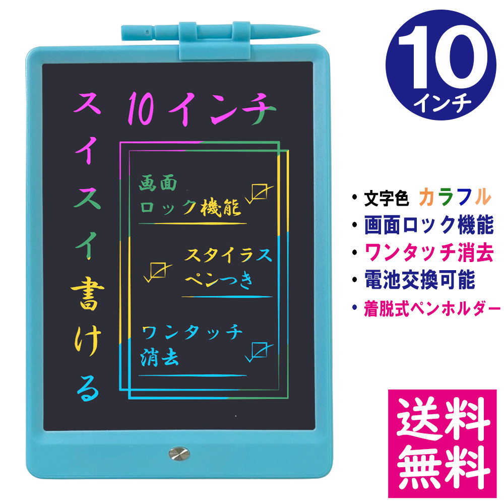 【メール便 送料無料】 LCD液晶 レインボーカラー 電子メモパッド 10インチ [本体/スカイブルー] デジタルメモ 電子お絵かきボード 【他の商品との同梱不可】