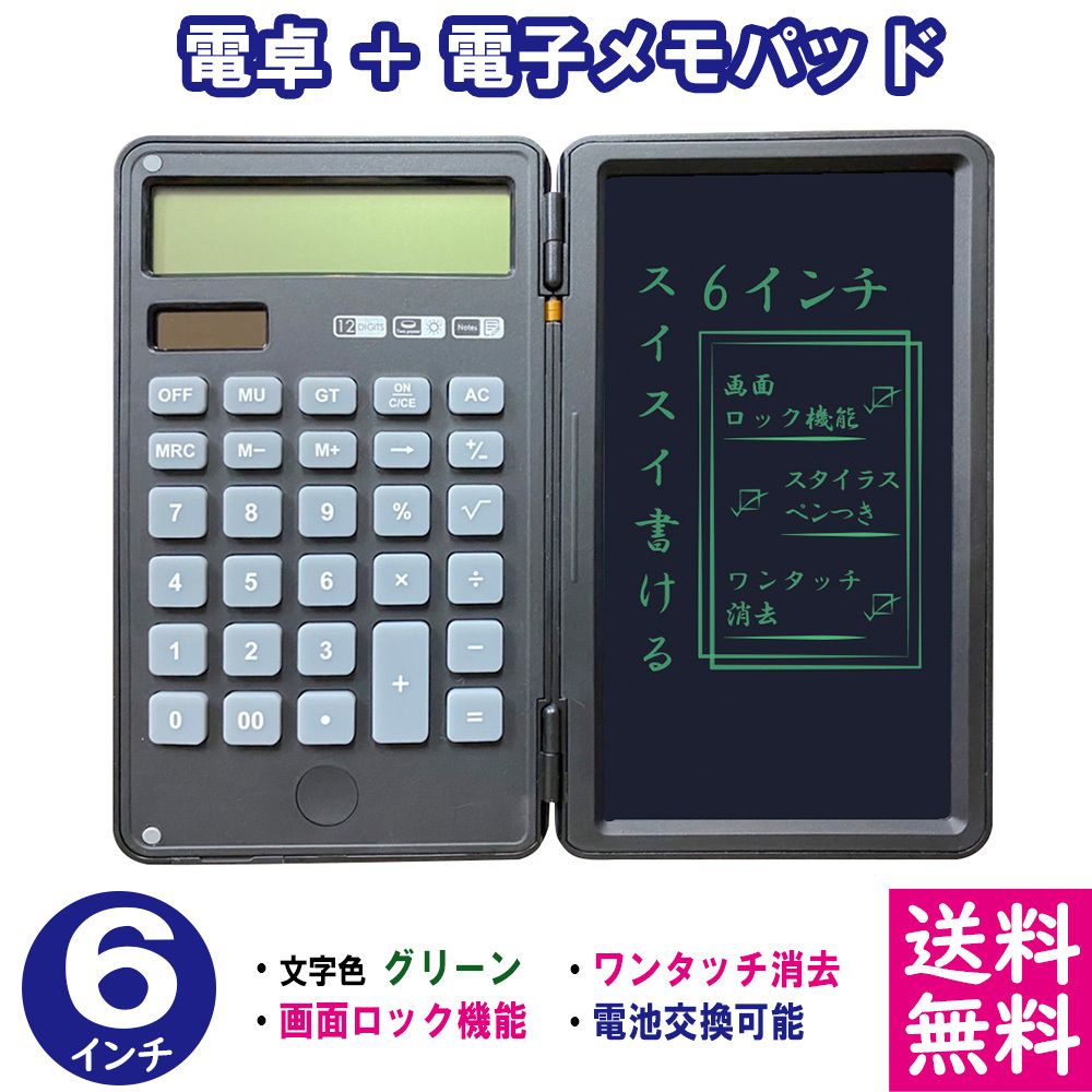 【メール便 送料無料】 LCD液晶 電卓 & 電子メモパッド 6インチ [ブラック] デジタルメモ IDM13-6-BK 計算機 【他の商品との同梱不可】
