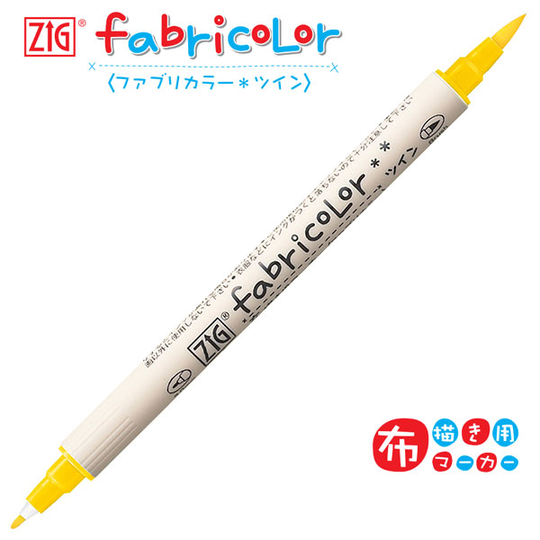 【SALE 在庫限り】【20本までメール便OK】呉竹 ZIG ファブリカラーツイン [ イエロー ] 布描き用マーカー 水性顔料 fabricolor TC-4000-050