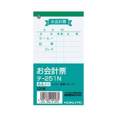 コクヨ お会計票(品名入り) 125×66mm 100枚 テ-251品番 テ-251品名 お会計票(品名入り)タテ・ヨコ 125・66枚数 100枚