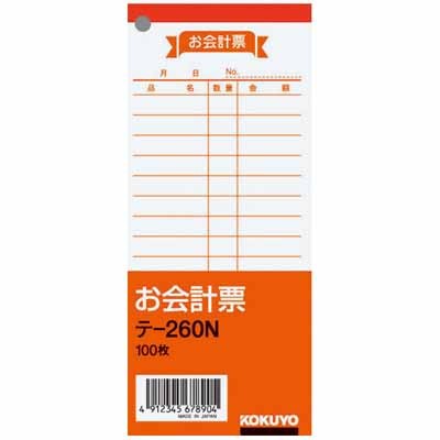 コクヨ お会計票 150×66mm 100枚 テ-260品番 テ-260N品名 お会計票タテ・ヨコ 150・66枚数 100枚