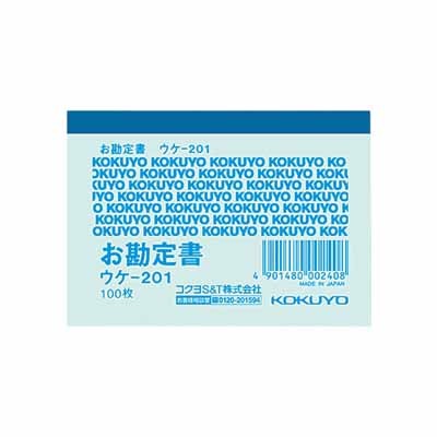 コクヨ お勘定書 B8横 簡易1色刷100枚 ウケ-201品番ウケ-201サイズ B8・ヨコ型仕様 ヨコ書き・一色刷り(お勘定書)タテ・ヨコ 64・91
