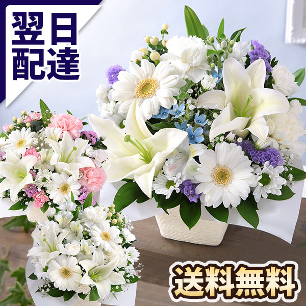 最短翌日届け 14時まで 花 お供え 旬のおまかせアレンジS お悔やみ 供花 仏花 アレンジ お花 生花 お盆 お彼岸 法要 供養 初盆 ユリ