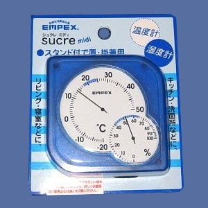 【EMPEX】シュクレmidi温・湿度計(クリアブルー)