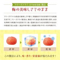 フリーズドライ(真空凍結乾燥)製法だから梅の美味しさそのまま、いつでもお好きな時に使える大変便利で彩りも可愛い乾燥梅肉です。