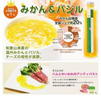 みかん果肉、穀物酢、たまねぎ、大豆油、砂糖、バジルソース(オリーブオイル、ナチュラルチーズ、松の実、バター、食塩、にんにく)、胡椒、安定剤(増粘多糖類)、乳化剤、クエン酸、(原材料の一部に乳、大豆を含む)