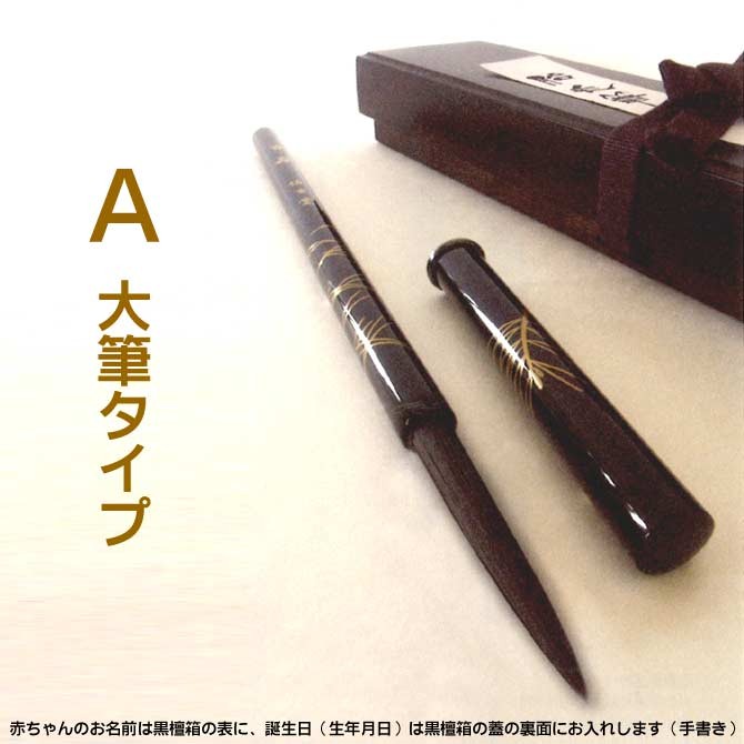 【A大筆】最高級胎毛筆(赤ちゃん筆)百寿筆【輪島塗り・黒檀箱入り】