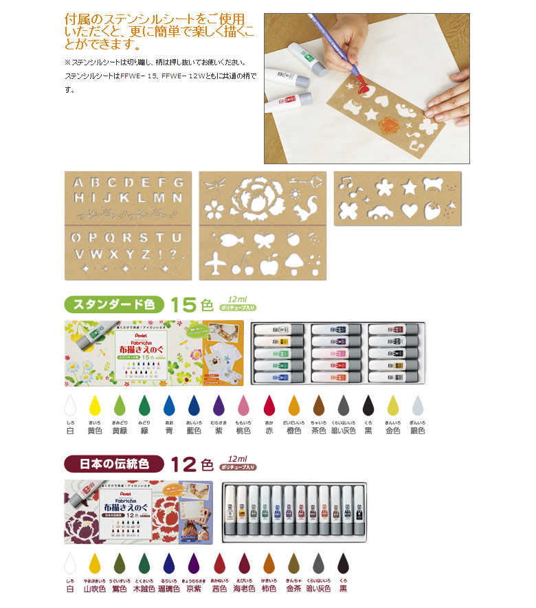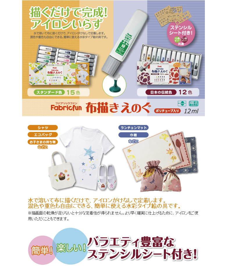 ぺんてる Fubricfun 布描きえのぐスタンダード15色(FFWE-15) ファブリックファン絵の具 12mlポリチューブ入り
