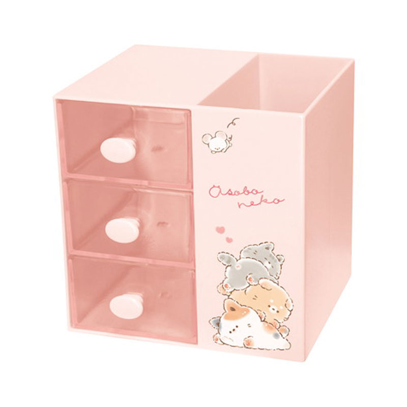 クラックス 3段チェスト ペンスタンド付き アソボウネコ 小物入れ ディスプレイ オシャレ プレゼント SNS映え