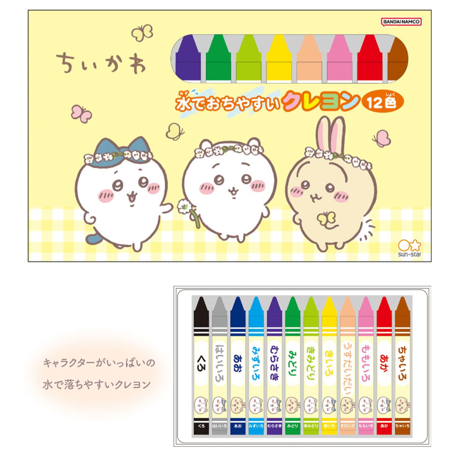 使用頻度の高い基本の12色が入ったクレヨンです。水で落としやすい性質なので、初めてクレヨンに触るお子様でも使いやすいのが嬉しい。1つ1つの巻紙にもワンポイントのキャラクターデザインが入っています。