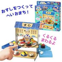 押し型を使って、ねんどで本物みたいなおすしが作れます。お家族やお友達と楽しくおすし屋さんごっこができます。ねんど遊びを楽しくするために、組立てたお店に動くギミックを追加しました。興味を引くしかけ をつくることで、遊びが広がります。