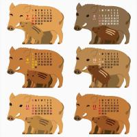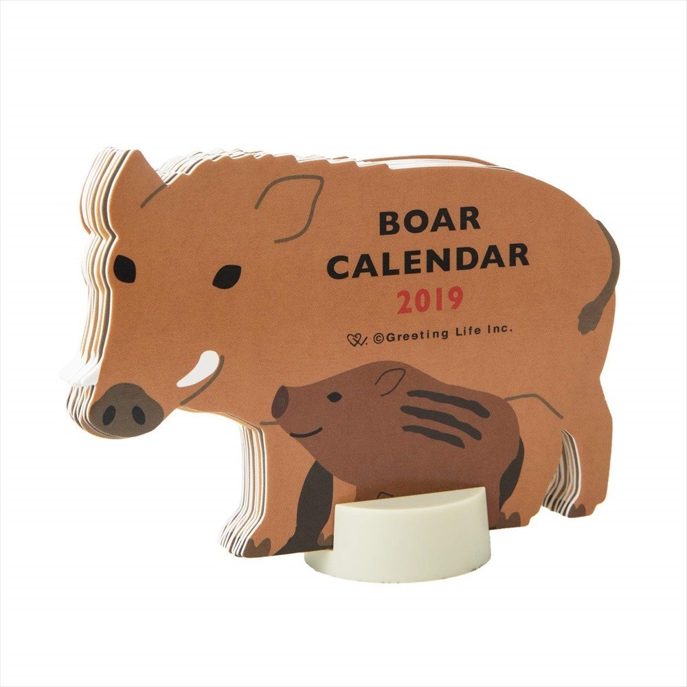 かわいい動物が机でくつろぎます★ グリーティングライフ 2019年 アニマルダイカット カレンダー イノシシ