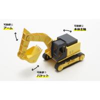 アームの先端にバケットを取り付け、地面を掘削、整地する自走式の建設機械です。建機シリーズは、揃えて並べると、工事車両として大迫力の画になります。