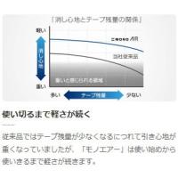 引く力を半減 驚くほど軽く消せる修正テープ「MONO AIR」本製品の特長は、当社従来品より61%(テープ残量10m時)テープの引出力を軽くした点です。修正部を軽くなぞる感覚で、スピーディにストレスなく修正できます。これまでの修正テープのテープ引き出しが重かった理由は、紙面からヘッドを離した時のテープのたるみを防止していたため。そのためテープ残量がわずかになると平均で約30%引出力が重くなって使いにくくなっていました。(リールの径が小さくなるため)。 本製品はこれまでの方法を改め、テープ走行をコントロールする機構を内蔵。修正ヘッドが紙面に触れる力を利用して「テープ走行(ロック解除)」、紙面から離れると「テープ停止(ロック)」することで、これまでつねにリールに負荷していた抵抗(重み)を半減させました。その結果、使用する時の引出力は、使い始め(テープ10m時)で61%軽減、残量2m時で58%軽減しました(当社従来品比較)。新機構「エアータッチシステム」を搭載し、使い始めから使いきるまで驚くほど軽く消せる修正テープ「MONO AIR」。 世界初体感の軽い引き心地で、修正ストレスゼロへ。●本体サイズ:31×17×78mm●テープの長さ:10m