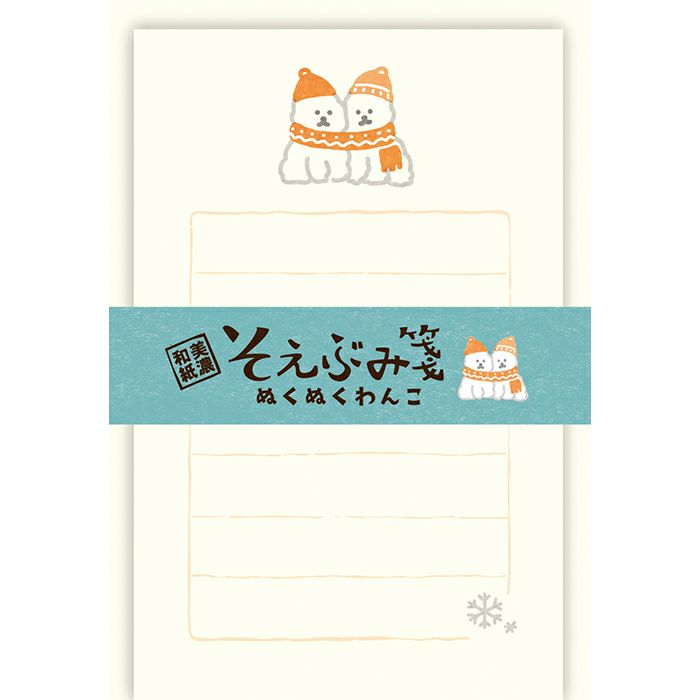 古川紙工 そえぶみ箋 ぬくぬくわんこ 優しい色目の和紙にかわいいイラストが入った和紙のレターセット 美濃和紙 日本製