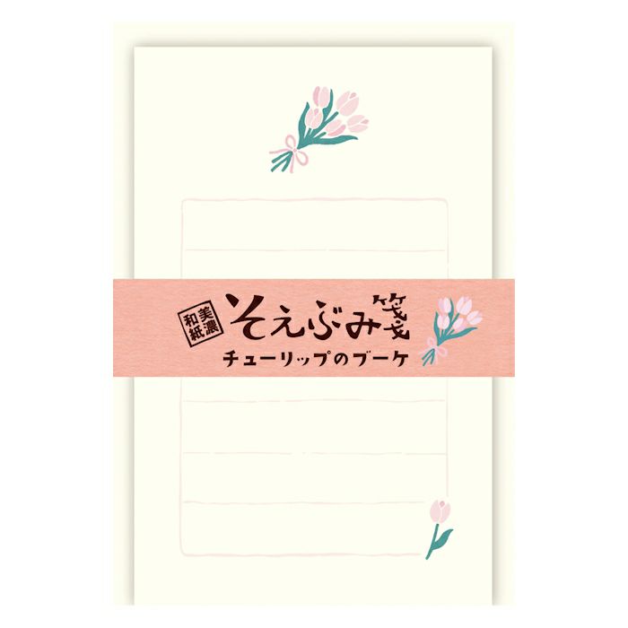古川紙工 そえぶみ箋 チューリップのブーケ 優しい色目の和紙にかわいいイラストが入った和紙のレターセット 美濃和紙 日本製