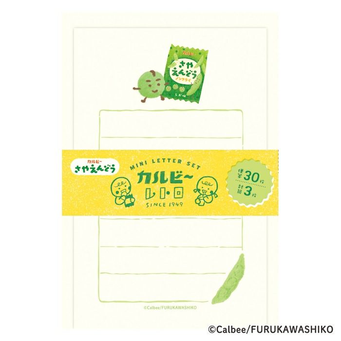 あの大人気のお菓子たちが、かわいくレトロなイラストになった「カルビーレトロ」シリーズ。美濃和紙製のミニレターセットです。柔らかな美濃和紙の風合いに、手書きのパッケージとキャラクターのワンポイントがマッチ。メッセージにも、デコにも大活躍です。■内 容:便箋 30枚綴り、封筒 3枚入■サイズ:便箋 H114×W73mm、封筒 H82×W120mm■素 材:美濃和紙