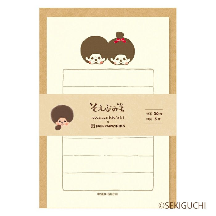 1974年に誕生し、世代を超えて愛され続けるレトロな雰囲気が魅力的なモンチッチが、古川紙工描き起こしで大人かわいいステーショナリーになりました!世代を超えてお楽しみ頂けるデザインです。コレクターも多く愛され続ける「そえぶみ箋」に、モンチッチ柄が登場!シンプルなデザインで、どんな人でも気軽にお使いいただけます。■便箋:30枚綴り H114×W73■クラフト縦封筒:5枚入 H120×W82mm