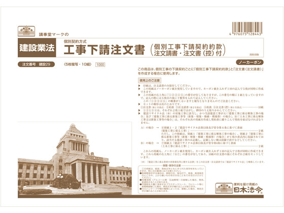 日本法令 工事下請注文書 ノーカーボン5枚複写 A4 建設29
