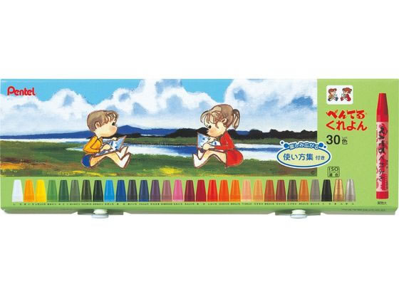 【商品説明】環境にやさしい包装素材を使用。くれよんの技法を紹介した「使い方集」付きです。【仕様】●内容:30色(レモンいろ、みかんいろ、だいだいいろ、ペールオレンジ、おうどいろ、うすちゃ、ちゃいろ、こげちゃ、しゅいろ、あか、きいろ、むらさき、みずいろ、ももいろ、きみどり、はいみどり、はいあかむらさき、みどり、ふかみどり、あお、あいいろ、ぐんじょう、はいいろ、くろ、しろ、うぐいすいろ、えんじいろ、きちゃ、きんいろ、ぎんいろ)●GPNエコ商品ねっと掲載ペンテル PENTEL ペンテルクレヨン ぺんてるクレヨン ペンテルくれよん 学校 お絵かき お絵描き 画材 教材 小学校 幼稚園 保育園 学童用品 塗り絵 ぬりえ PTCR−30 PTCR30 ボタンホック付き sch_hi02