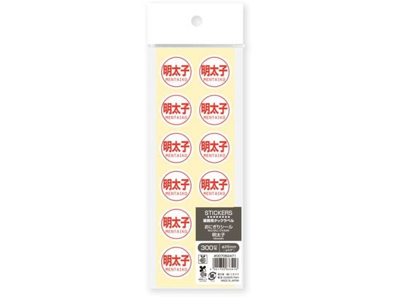 【商品説明】業務用タックラベル・おにぎりシール。食品のフレーバー表示に便利です。【仕様】●おにぎり用表示シール・めんたいこ●サイズ(シール1個あたり):直径25mm●材質:光沢紙・バイオマスインキ10%●入数:300枚(12枚/1シート×25シート)●注文単位:1パック(300枚)