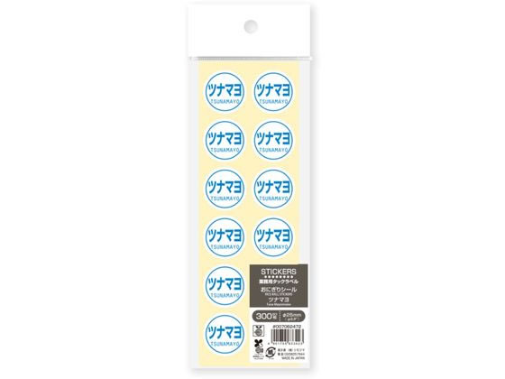 【商品説明】業務用タックラベル・おにぎりシール。食品のフレーバー表示に便利です。【仕様】●おにぎり用表示シール・ツナマヨ●サイズ(シール1個あたり):直径25mm●材質:光沢紙・バイオマスインキ10%●入数:300枚(12枚/1シート×25シート)●注文単位:1パック(300枚)