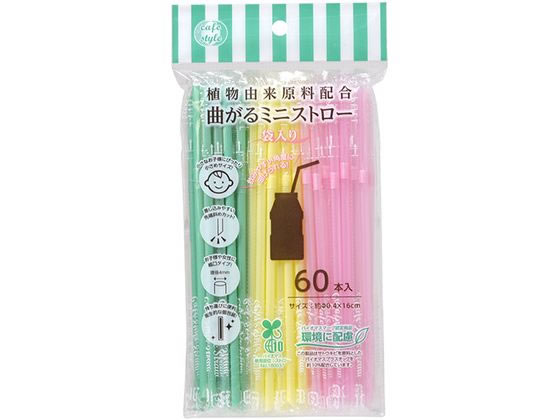 ストリックスデザイン 植物由来 曲がるミニストロー 袋入 60本