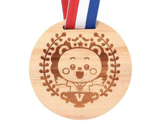 【商品説明】高級感あふれる木製メダルです。かわいいイラストが焼き印されています。裏面は無地なので自由にお絵かきも楽しめます。子どもたちの創造力を引き出すと同時に、一生の思い出に残るアイテムに!リボンにはマジックテープが付いており、もしもの時にも首がしまらず安全に使用できる安心設計。【仕様】●商品サイズ:φ100×10mm●セット内容:本体のみ●1個重量(g):50●材質:松、ポリエステル●製造国:中国●運動会やスポーツ大会、表彰式などのプレゼントや記念品におすすめです。