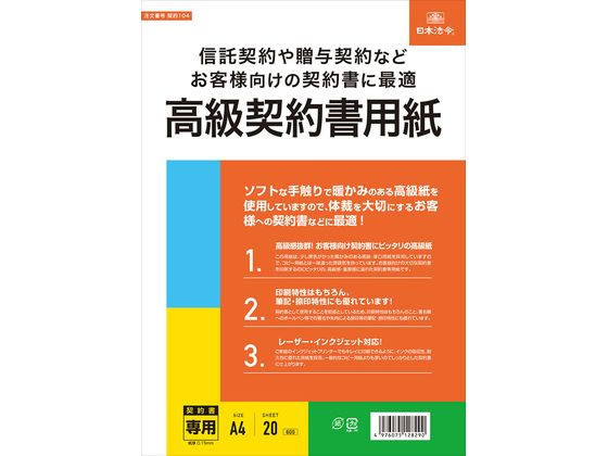 【お取り寄せ】日本法令 高級契約書用紙 契約104