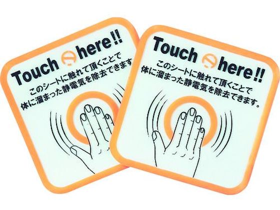 【商品説明】●車・一般家庭・事務所などのドアをはじめ、あらゆる金属部分に貼り付け、触れるだけで体に溜まった静電気を除去します。●透明素材なので、貼り付ける部分のデザインを損ないません。●見て分かる標示タイプです。【仕様】●型番:TSG-K100D ●入数:2枚 ●幅(mm):100 ●高さ(mm):100 ●厚さ(mm):1.5 ●パック入数(枚):2 ●シート寸法(mm):100×100×1.5 ●表面抵抗値:10×10[[の9−10乗]]Ω ●両面テープ付 ●特殊除電樹脂(塩化ビニール製ベース)