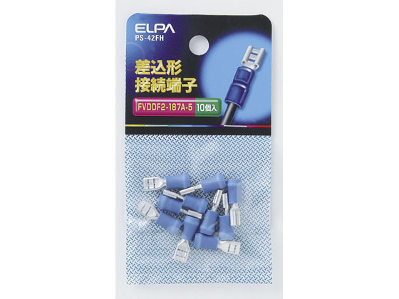 【商品説明】●FVDDF2−187A−5【仕様】●F形●全長:18.7mm●専用タブ厚:0.5mm●適合電線範囲:より線/1.65〜2.63mm2●入数:10個●カラー:ブルー