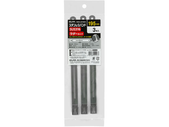 【商品説明】●ラダータイプ●はしご形でズレが少なく、がっちり固定【仕様】●全長:195mm●幅:12mm●結束内径:21〜45mm●引張強度:113.4kg●使用温度範囲:−40℃〜+300℃●材質:SUS316●3本入