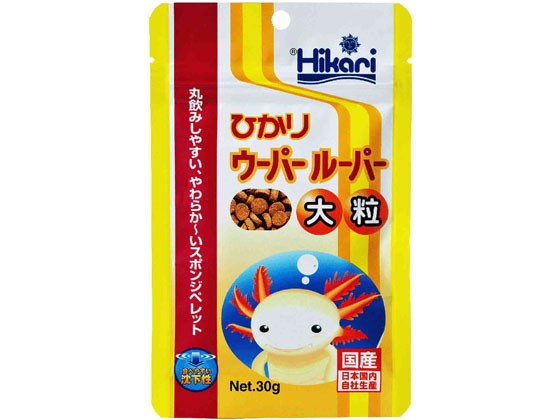 【商品説明】柔らかいスポンジペレットタイプ。12cm以上のウーパールーパーが食べやすい粒サイズです。【仕様】●使用原料:フィッシュミール、オキアミミール、でんぷん類、ビール酵母、大豆ミール、魚油、小麦粉、海藻粉末、スピルリナ、アミノ酸(メチオニン)、アミノ酸(リジン)、カロチノイド、ビタミン類(塩化コリン、E、C、イノシトール、B5、B2、A、B1、B6、B3、K、葉酸、D3、ビオチン、B12)、ミネラル類(Fe、Mg、Zn、Mn、Co、Cu、I)、食用色素(赤3)●保証値:粗蛋白質47%以上、粗脂肪5%以上、粗繊維3%以下、粗灰分17%以下、リン1%以上、水分10%以下●使用方法:2〜3日に1回、数分で食べきる量を与えてください(冬期は1週間に1回)。●保管方法:開封後は、冷暗所に保存しできるだけ早くお使いください。