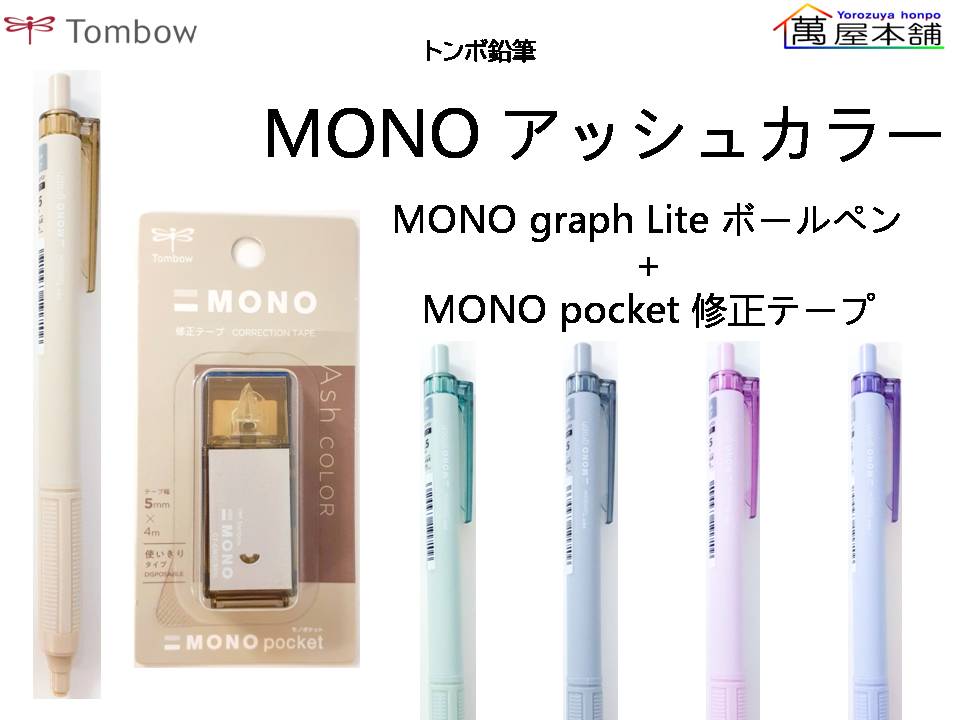 トンボ鉛筆 限定アッシュカラー モノグラフライト 油性ボールペン 0.5mm+モノポケット 修正テープのセット BC-MGLE/CT-CM5C
