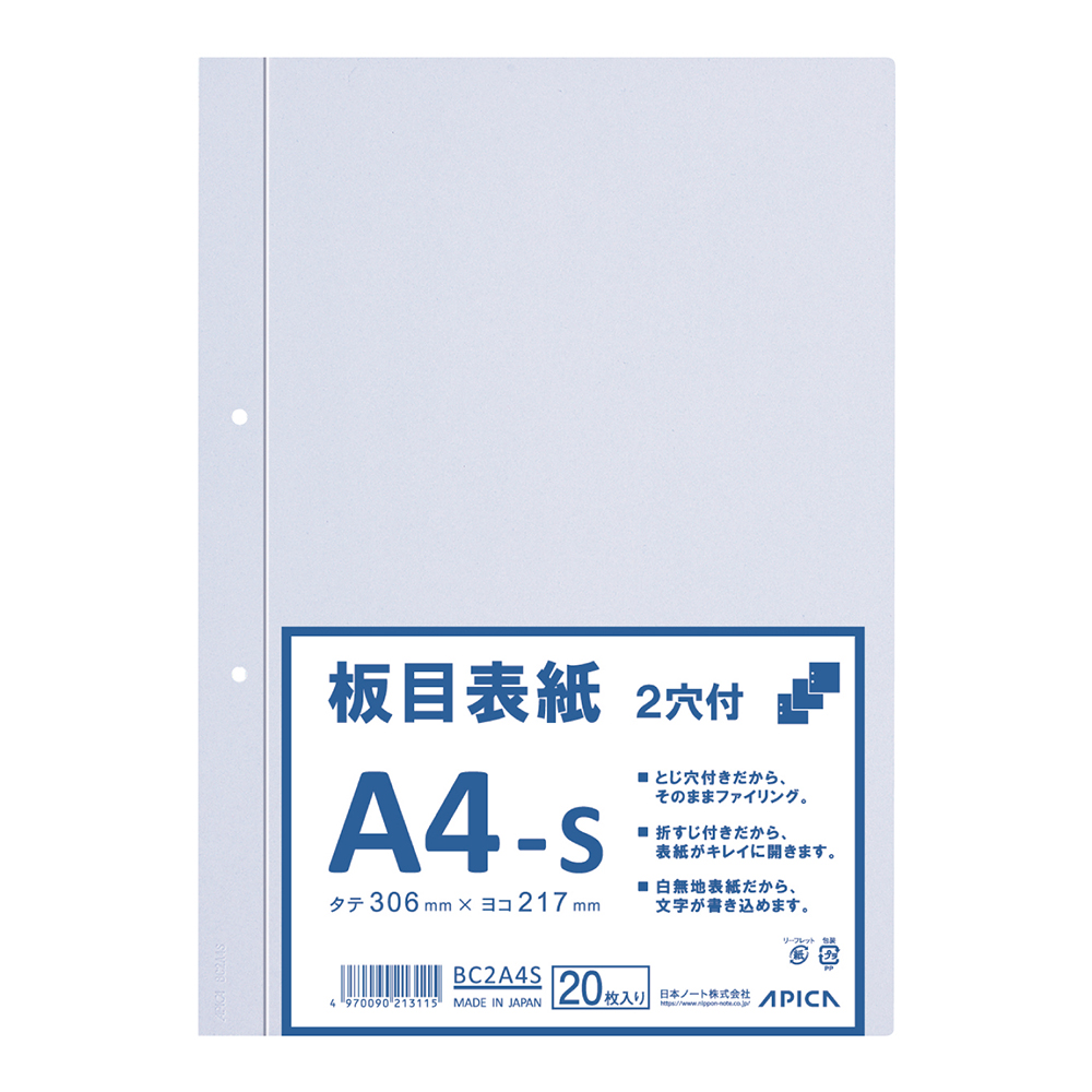 日本ノート アピカ 板目表紙 2穴付き A4タテ 20枚入 BC2A4S