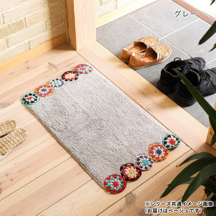 サイドのクロシェ編みがポイントの可愛らしいマットです。どこか懐かしさやレトロな雰囲気も感じられる、ハンドメイドのクロシェ編み。落ち着いた色味でまとめたリラックス感のあるマットです。バスマットサイズなのでバスルームはもちろん、玄関マットとしてもちょうどいいサイズ感。