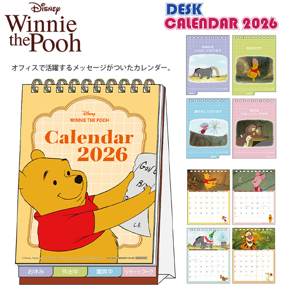 | 特徴 | 「デスクカレンダー メッセージ付 くまのプーさん 2026」は、コンパクトでデスクに置きやすい卓上カレンダーです。プーさんや仲間たちのかわいいデザインに加え、便利なメッセージカード付きで、仕事や家庭のスケジュール管理が楽しくなります。(品番 S8521662/2026年 令和8年) プーさんと仲間たちのデザイン 便利なメッセージカード付き デスクに置きやすいコンパクトサイズ 月めくりカレンダー |