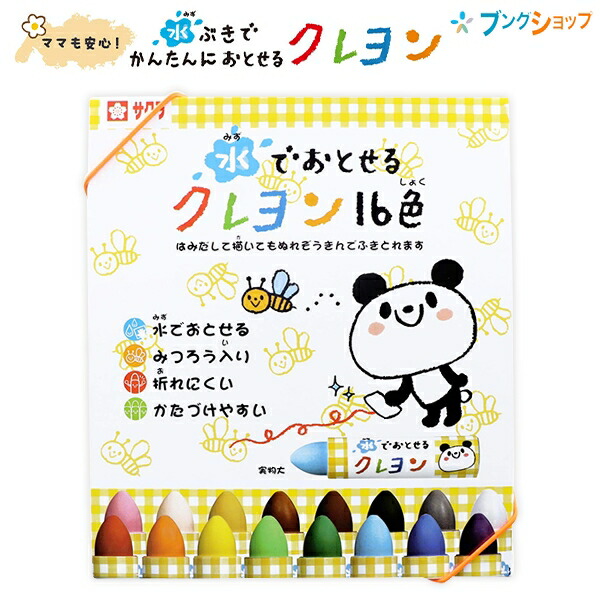 | 特徴 | 汚れを気にせず使える幼児向けのクレヨン16色です。 手足や体についても水で洗えば容易に落とせます。表面がつるっとしたところは、はみだして描いても濡れ布巾で拭き取ることができます。 ミツバチの巣より採取される「みつろう」を原材料に使用しています。 力いっぱいに握って描いても折れにくい太さ。 持ち運ぶときに散らばりにくいゴム付きケース。 元あった場所にかたづけやすい色名シール付きです。 |