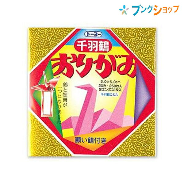 トーヨー ミニ千羽鶴用おりがみ 5.0cm 002001 5×5cm 21色入り 251枚 願い鶴用折り紙1枚 金エンボス紙1枚 千羽鶴の折り方・つなぎ方 願い鶴の折り方 千羽鶴Q&A
