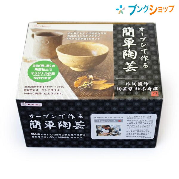 | 特徴 | 自宅でカンタンに陶芸体験ができる!! 陶芸粘土と専用部材のセットです。 陶芸粘土は色違いでお揃いが作るkとができる黒と茶の2色!! 温度調節ができる(100から160℃)家庭用オーブンで本格的な陶器が作れます。 作品ができたらセットに入っている安全素材のコート剤を塗れば耐久性が出るで 自分だけのオリジナルの食器としてもご使用になられます。 |