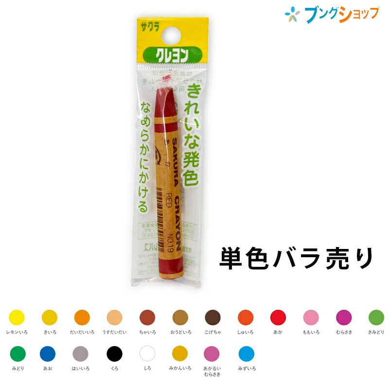 サクラクレパス くれよん クレヨン 【バラ売り1本】 /レモン/きいろ/だいだい/うすだいだい/ちゃいろ/おうどいろ/こげちゃ/しゅいろ/あか/ももいろ/むらさき/きみどり/みどり/あお/はいいろ/くろ/しろ/みかん色/あかるいむらさき/みずいろ/