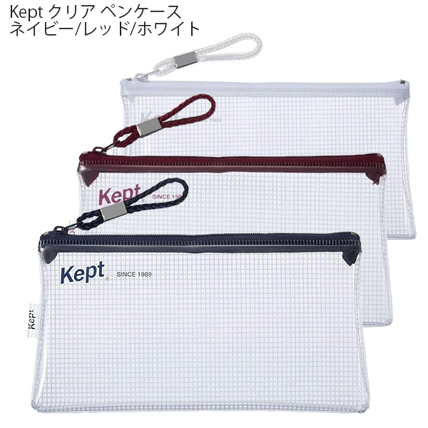 レイメイ藤井 Kept ケプト ペンケース 透明 クリア クリア ワイド KPF603 ネイビー / レッド / ホワイト 筆入れ 筆箱 ケプト おしゃれ 強度ある メッシュ入り 使い勝手良い 収納ケース シンプル
