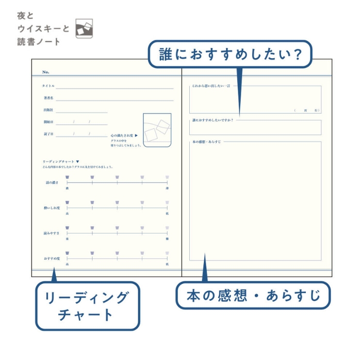 | 仕様 | ・1冊で20冊分の読書の記録ができます。総ページ数 48ページ ・目次・読みたい本リスト:各1ページ/20冊分 ・記録ページ(見開き1冊):40ページ/20冊分 ・お気に入りリスト:1ページ/20個分 |