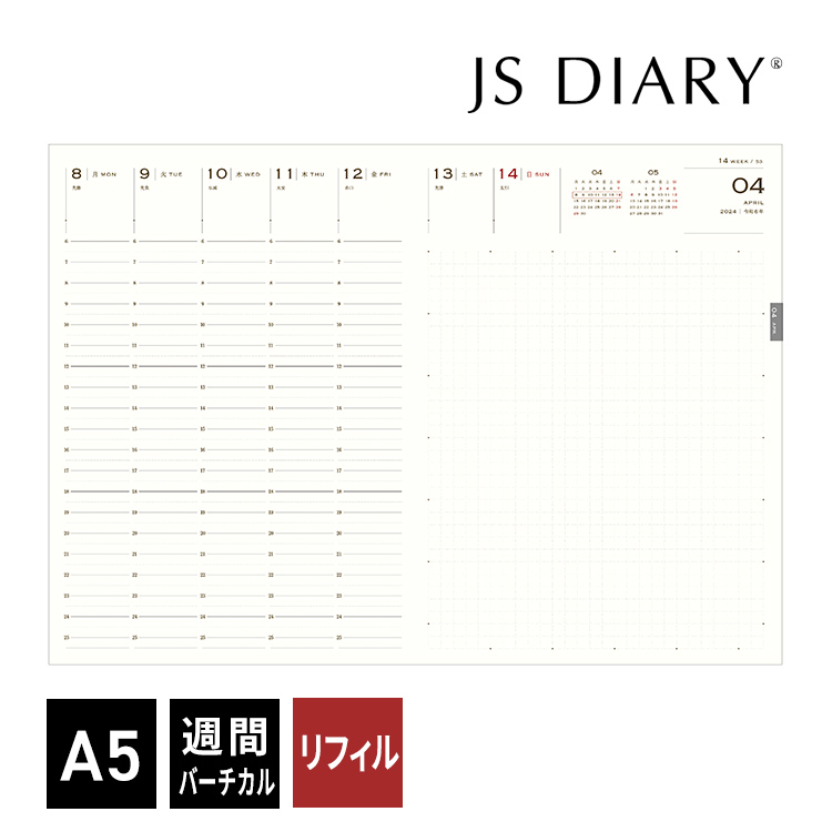 | カバー付き | ・2026年 手帳 JSダイアリー A5 週間 バーチカル+メモ ¥3,300 |