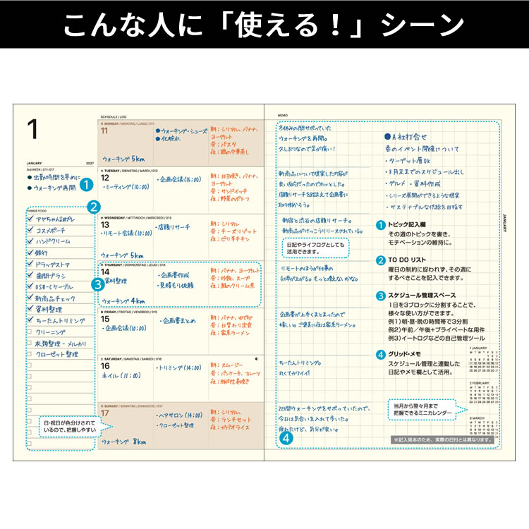| 使用可能日時 | ・月間ページ:2026年3月〜2027年6月 ・週間ページ:2026年3月1日〜2027年6月30日 |