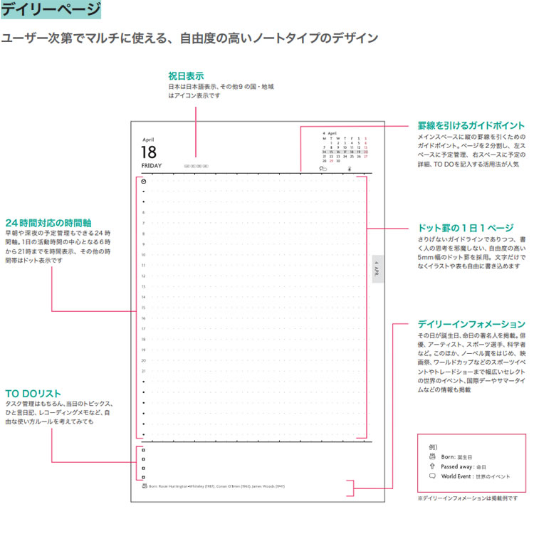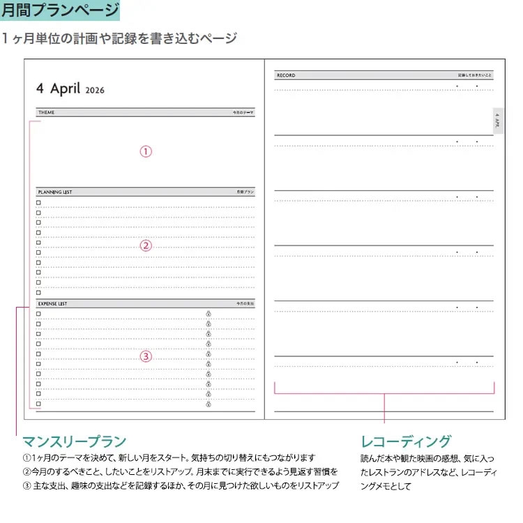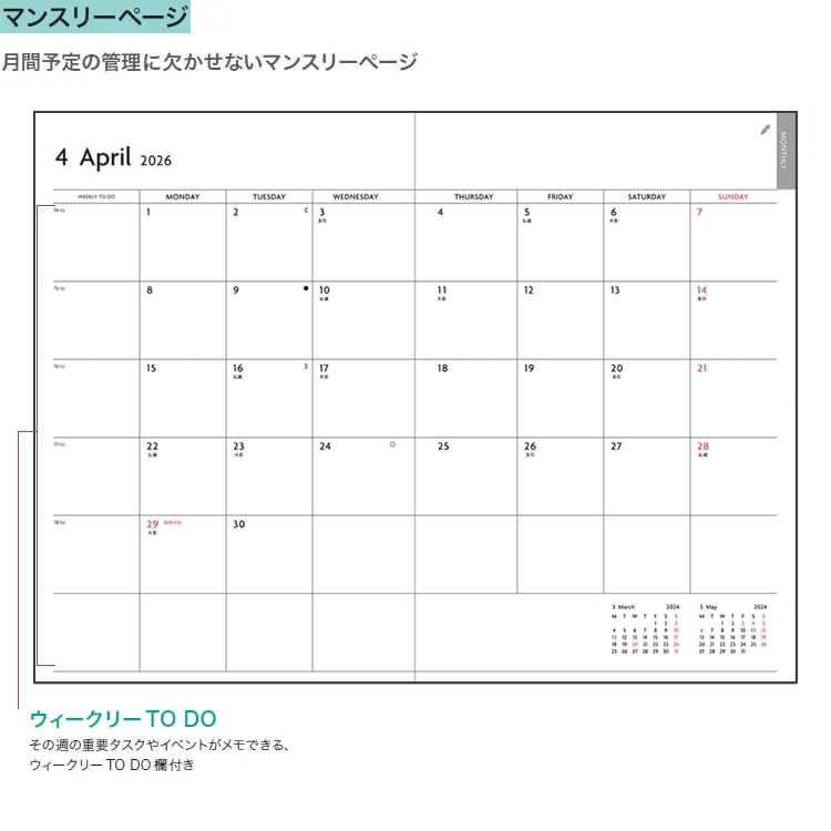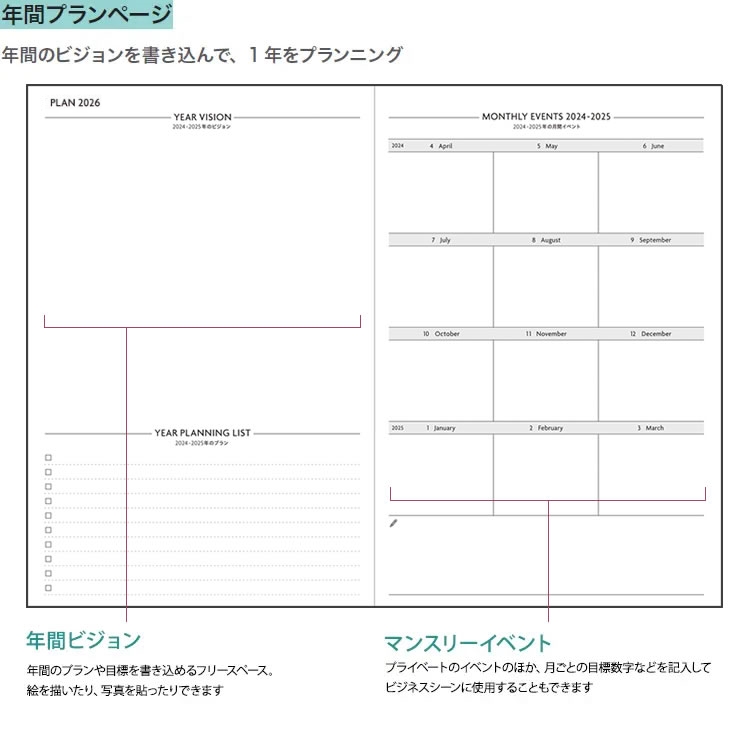 | 使用可能日時 | ・月間ページ 2026年3月〜2027年4月 ・デイリーページ 2026年4月1日〜2027年3月31日 |
