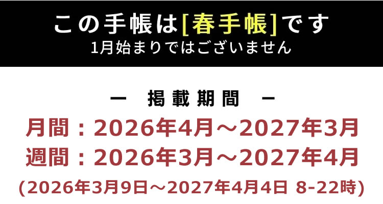| 使用可能日時 | ・月間 2026年4月〜2027年3月 ・週間 2026年3月9日〜2027年4月4日 |