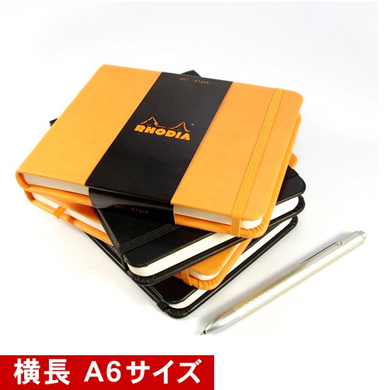 | 仕様 | ・サイズ:約縦110×横140×厚み18mm ・※A6サイズ(105×148mm)弱 ・重量:185g ・ページ数:192ページ ・紙重量:90g/m2 ・罫線:無地、ドット方眼 ・フランス製 ・カラー:オレンジ、ブラック |