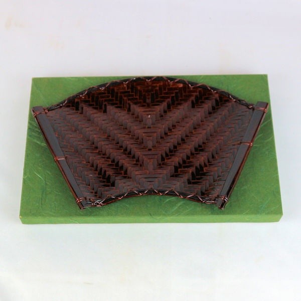 主菓子器との調和・対照を考慮して合わせる、唐物の螺鈿や堆朱・黒を極めたもの、砂張などの金属類、さらに各種盆から手付籠まで、材質、形状、意匠とも数限りなくあり、家元の好み物も多種類あります。
