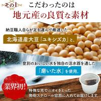 今までと同じ北海道産で遺伝子組み換えではありませんが、納豆組合と消費者庁との協議の結果、表記が「遺伝子組み換え混入防止確認済」という表記になりました。